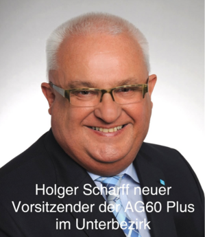 Die Arbeitsgemeinschaft der Seniorinnen und Senioren in der SPD (AG 60 plus) wählte einen neuen Vorsitzenden, da Ingrid Reske nach über 20 Jahren nicht mehr zur Verfügung stand. Ingrid Reske schlug als Ihren Nachfolger Holger Scharff vor, der von der Versammlung einstimmig gewählt wurde. Ihm zur Seite steht Waltraud Federkiel als stellvertretende Vorsitzende.